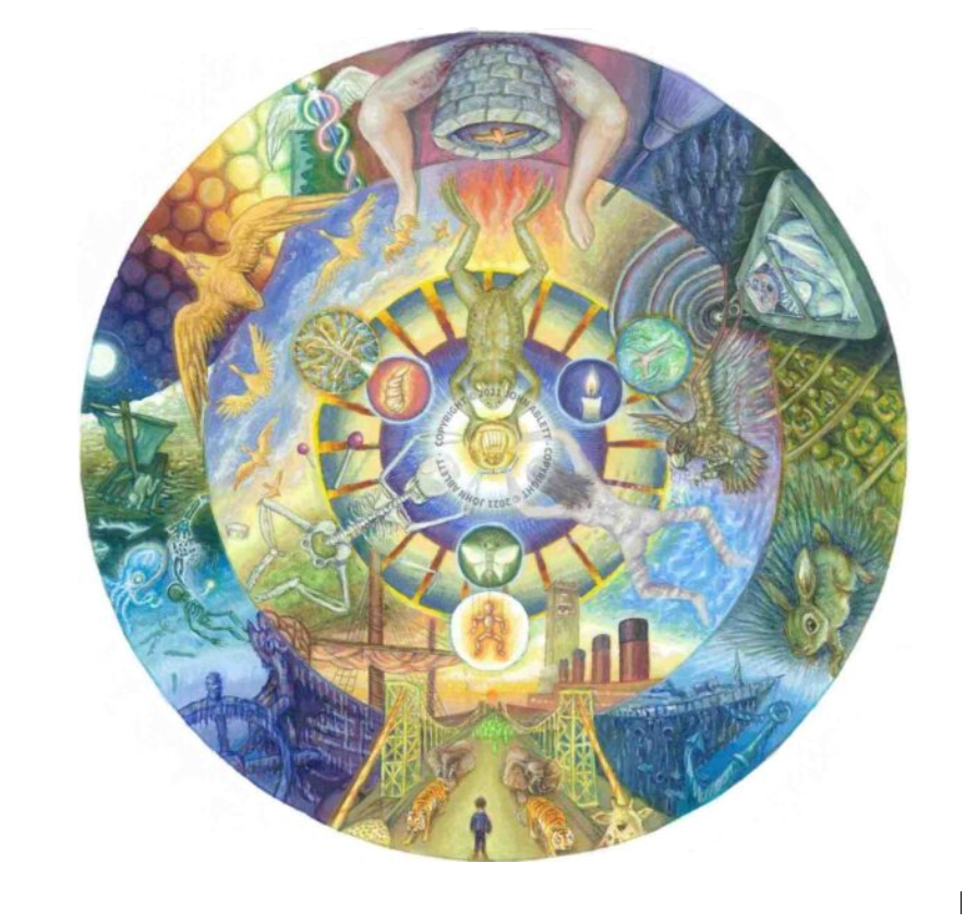 The John Ablett gallery is a unique collection of visionary images spanning the full range of human experience. Drawing on myths, symbols and stories, these meticulously detailed mandalas depict journeys between the threshold of life and death, leading to awe-inspiring moments of sacred encounter and archetypal intensity.